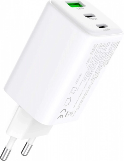 - 3 wyjścia: 2× USB‑C (20 W i 65 W) + 1× USB‑A (18 W)