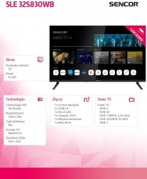 Panel D‑LED z rozdzielczością HD Ready, wsparciem HDR10 oraz technologią DNR redukcji szumów gwarantuje naturalne kolory i świetną czytelność z każdego miejsca dzięki kątom 178°/178°.