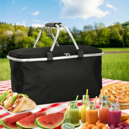 Z wygodnymi uchwytami i antystatycznymi rączkami, kosz termiczny na zakupy, plażę czy codzienne potrzeby jest idealnym rozwiązaniem. Do jego wszechstronności dodaje się możliwość użycia wkładów chłodzących, aby Wasze jedzenie pozostało świeże. Wasz czarny stylowy kosz piknikowy łączy elegancję z trwałością.