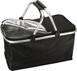 Składany kosz termiczny na piknik oferuje dużą pojemność 32L i jest wyposażony w podwójny zamek błyskawiczny dla łatwego dostępu. Dzięki wytrzymałej ramie metalowej i tekstylnej obudowie zapewnia stabilność i wygodę podczas użytkowania. Ten kosz jest kompaktowy i łatwy do przechowywania.