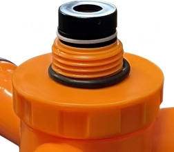 Złącze do węża ogrodowego i uszczelnienia gwarantują mocne i wodoszczelne połączenie. Zintegrowany system dociągania węża ułatwia montaż i zapobiega stratom wody.