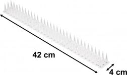 Praktyczne i dyskretne kolce przeciw gołębiom skutecznie uniemożliwiają ptakom siadanie w newralgicznych miejscach. Dzięki gęstemu rozmieszczeniu kolców ptaki tracą punkty podparcia, dlatego omijają parapety, gzymsy i balustrady. Wykonanie z tworzywa jest odporne na warunki atmosferyczne, a przy tym lekkie, więc nie obciąża podłoża.