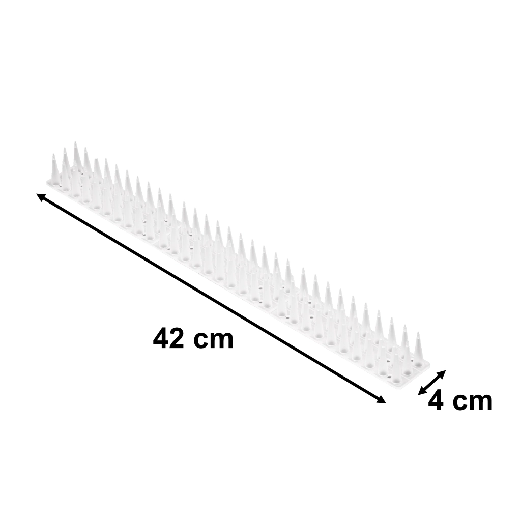 Białe plastikowe kolce prezentują się estetycznie, a jednocześnie są odporne na deszcz, słońce i mróz, zapewniając długotrwałą ochronę.