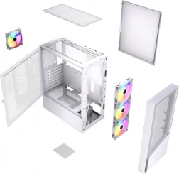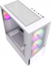 Fornax 4300 to biała obudowa midi tower zaprojektowana dla graczy i wymagających użytkowników, którzy oczekują świetnego przepływu powietrza, efektownego podświetlenia ARGB oraz wygodnego montażu. Przednie i górne panele mesh wspierają intensywną cyrkulację, a cztery preinstalowane wentylatory ARGB utrzymują optymalne temperatury nawet podczas długich sesji gamingowych.