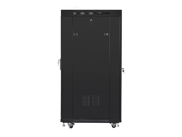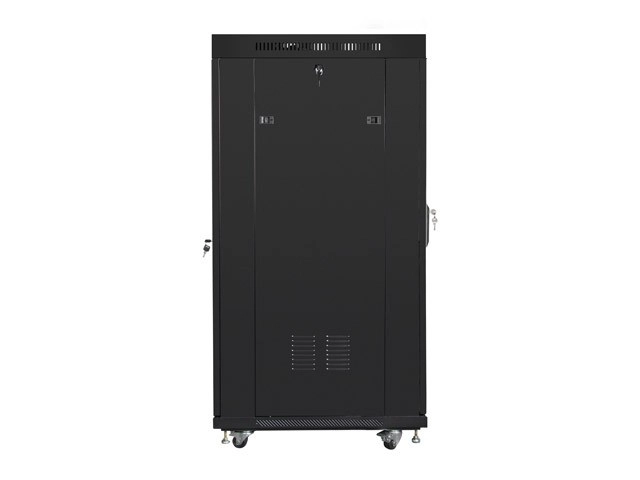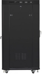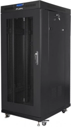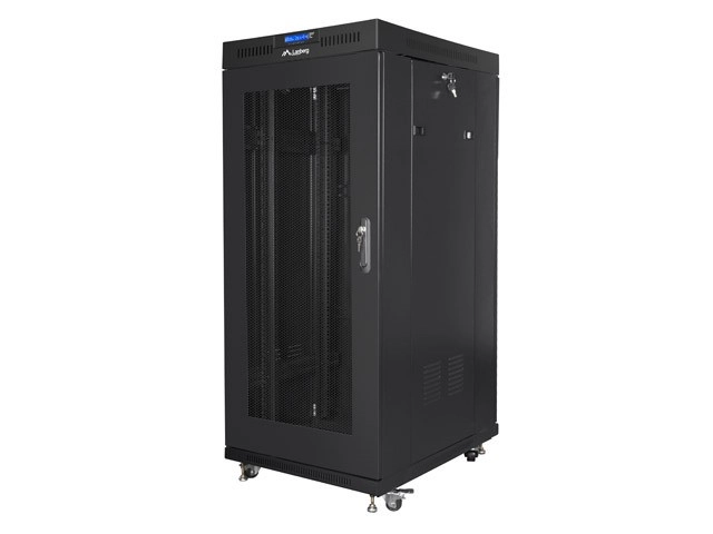 Ta stojakowa szafa rack 19" o wysokości 27U jest zaprojektowana dla centrów danych, serwerowni i rozbudowanych sieci firmowych. Solidny korpus z wysokiej jakości stali gwarantuje stabilność i bezpieczeństwo, a perforowane drzwi poprawiają przepływ powietrza i chłodzenie. Zintegrowany wyświetlacz LCD prezentuje temperaturę wewnątrz szafy, czas oraz stan wentylatorów, dzięki czemu masz pracę urządzeń pod stałą kontrolą.