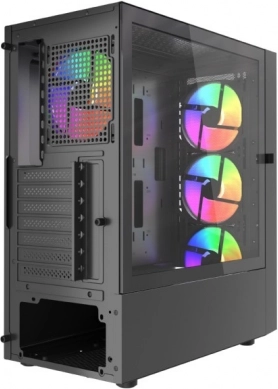 Obudowa gamingowa Fornax 4300 Midi Tower ATX w kolorze czarnym z 4× wentylatorami ARGB, boczną szybą na magnetycznym zawiasie oraz portami 2× USB 3.1 + 1× USB 2.0.