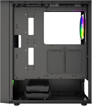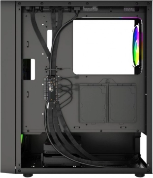 Fornax 4300 to obudowa zaprojektowana dla graczy, którzy oczekują świetnego chłodzenia, uporządkowanego prowadzenia kabli oraz atrakcyjnego wyglądu z podświetleniem ARGB. Czarna konstrukcja jest uzupełniona bocznym panelem z hartowanego szkła osadzonym na magnetycznym zawiasie, co zapewnia szybki i bezpieczny dostęp do komponentów.