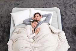 Podwójna pompa pompuje materac w ok. 4 minuty i na bieżąco utrzymuje idealną twardość dla spokojnego snu bez zapadania się.