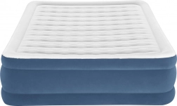 Ten podwyższony, dwuosobowy materac typu airbed o wymiarach 203 × 152 × 46 cm łączy komfort i najwyższą funkcjonalność. Miękka welurowa powierzchnia jest przyjemna w dotyku i łatwa w utrzymaniu, podwyższona krawędź ułatwia zakładanie prześcieradła, a konstrukcja Wave Beam zapewnia długotrwałą stabilność bez odkształceń.