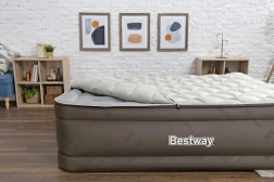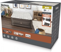 Ciesz się wygodnym snem w każdym miejscu. Dmuchane łóżko BESTWAY w rozmiarze Queen zapewnia stabilne podparcie, przyjemną w dotyku powierzchnię oraz podwyższoną wysokość 51 cm dla komfortowego wstawania. Zintegrowana elektryczna pompka gwarantuje szybkie i bezproblemowe przygotowanie łóżka oraz jego spuszczenie powietrza.