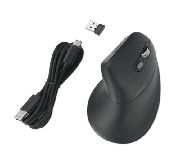 Ergonomiczna pionowa bezprzewodowa mysz Kensington Pro Fit zapewnia wygodę i produktywność dzięki pełnowymiarowej konstrukcji i ergonomicznemu kształtowi. Obsługuje podłączenie do trzech urządzeń i jest przyjazna dla środowiska dzięki użyciu materiałów z recyklingu.