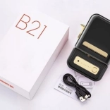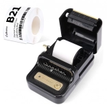 Zawartość opakowania: drukarka NIIMBOT B21S, 1× startowa rolka etykiet 50 × 30 mm, kabel ładujący USB‑C, instrukcja. Dodatkowe rolki papierowe i transparentne dostępne są oddzielnie.