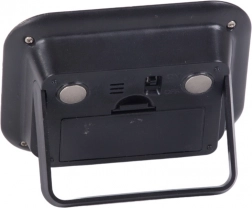 Silny magnes do przymocowania na metalowych powierzchniach oraz rozkładane nóżki dla stabilnego ustawienia na stole lub stoliku nocnym.