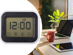 Dzięki silnemu magnesowi przymocujesz go do lodówki lub metalowej szafki, ewentualnie postawisz na stole przy pomocy składanych nóżek. Zintegrowany budzik i timer (odliczanie) przydadzą się podczas gotowania, nauki i treningu.