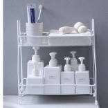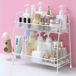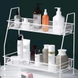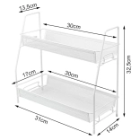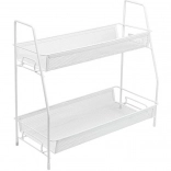 Ten uniwersalny dwupoziomowy stojak w eleganckim białym kolorze oszczędza miejsce i utrzymuje wszystko przejrzyście pod ręką. Metalowe ażurowe półki zapewniają cyrkulację powietrza, a podwyższone krawędzie zapobiegają spadaniu przedmiotów. Minimalistyczna rama w kształcie A wpasuje się w nowoczesne wnętrza i doda blatowi czysty, uporządkowany wygląd.