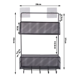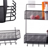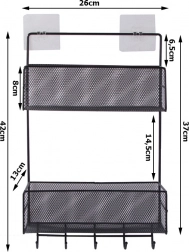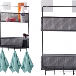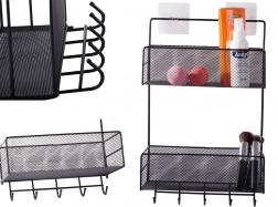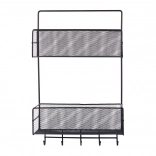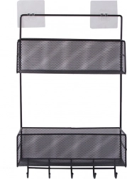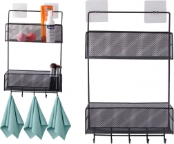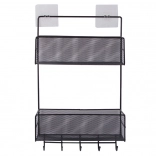 Ten multifunkcyjny organizer ścienny z lakierowanego metalu to idealne rozwiązanie do przejrzystego i eleganckiego przechowywania codziennych potrzeb. Dwie wentylowane półki koszowe pomieszczą kosmetyki, środki czystości, przyprawy i drobne akcesoria, a dolne haczyki utrzymają ręczniki, ściereczki czy klucze zawsze pod ręką. Dzięki montażowi bez wiercenia łatwo przymocujesz go do gładkiej powierzchni.