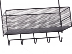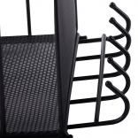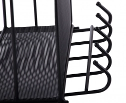 Minimalistyczny, czarny design pasuje do nowoczesnych i klasycznych wnętrz, a solidna metalowa konstrukcja gwarantuje stabilność i długą żywotność. Otwarta siatkowa konstrukcja zapewnia cyrkulację powietrza, szybkie wysychanie i dobrą widoczność przechowywanych rzeczy.