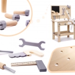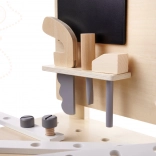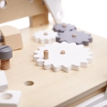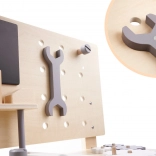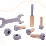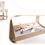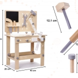 Świetna drewniana zabawka zestaw narzędzi dla małych dzieci, które chcą naśladować dorosłych i odkrywać świat wokół siebie. Dzięki bogatemu wyposażeniu dzieci mogą poczuć się jak prawdziwi mistrzowie w swojej dziedzinie.