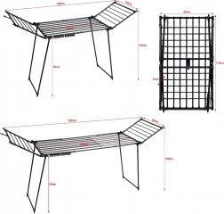 Po złożeniu suszarka ma jedynie 60 × 10 × 110 cm, więc zmieści się w szafie, schowku czy wąskich wnękach.