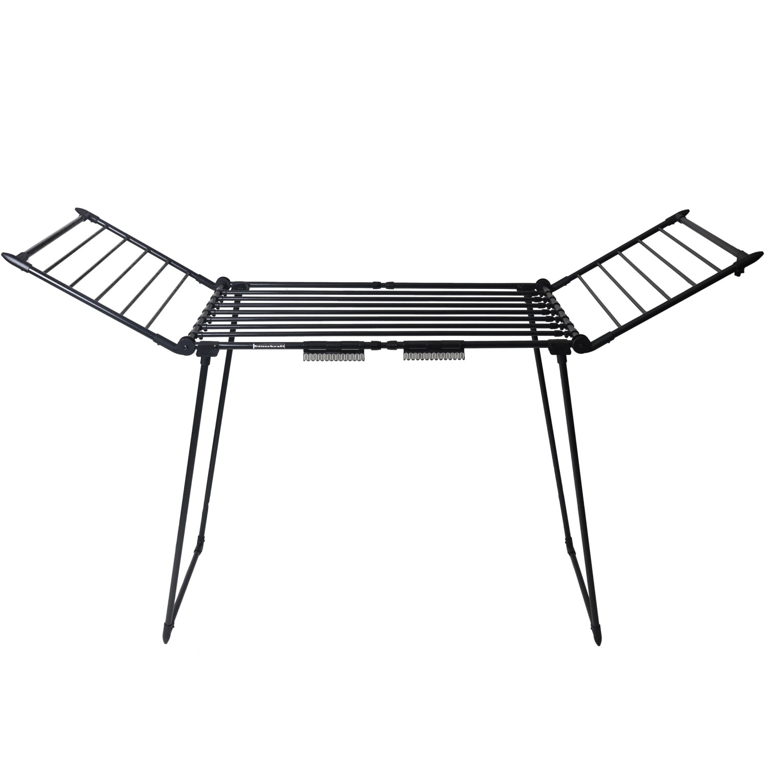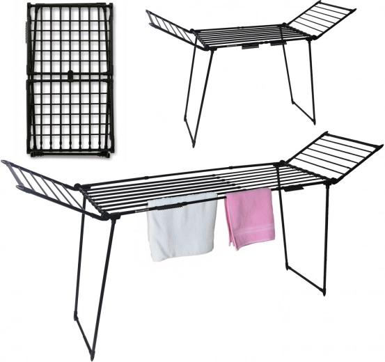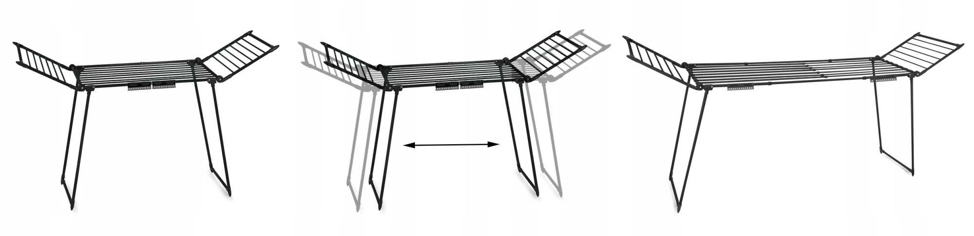 Maksymalizuj suszenie bez wiercenia i bez kłopotów. Ta suszarka łączy solidną konstrukcję ze stali węglowej z praktycznymi detalami do codziennego użytku. Rozsuwana część środkowa i składane skrzydła pozwalają dopasować powierzchnię do wsadu pralki – od ubranek dziecięcych po obszerne koce i swetry.