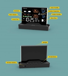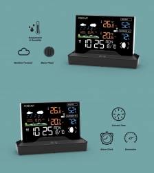 Dzięki bezprzewodowemu czujnikowi o zasięgu do 30 m otrzymasz aktualną temperaturę i wilgotność z wnętrza i z zewnątrz. Barometr oraz wbudowana prognoza pogody na 12–24 godziny ułatwią planowanie dnia. Do dyspozycji masz także budzik z funkcją drzemki, kalendarz oraz wyświetlanie faz Księżyca.