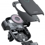 Elegancki uchwyt AUKEY do montażu na kratce nawiewu, nagrodzony iF DESIGN AWARD 2020, łączy pewne mocowanie z szybkim bezprzewodowym ładowaniem Qi. Automatycznie dopasowuje moc 5 W / 7,5 W / 10 W (dla najlepszego efektu użyj samochodowej ładowarki z obsługą Quick Charge). Czujnik elektromagnetyczny rozpoznaje włożenie telefonu i ramiona same się zaciskają, a dotykowy przycisk umożliwia szybkie zwolnienie.