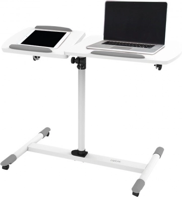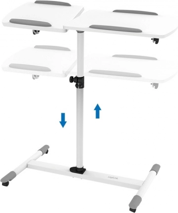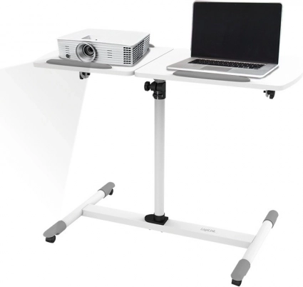 Uniwersalny mobilny stolik na projektor i laptop o udźwigu do 10 kg oferuje płynną regulację wysokości, pochylenie blatu do 35° oraz cztery kółka jezdne dla łatwego przemieszczania. Stabilna stalowa konstrukcja i antypoślizgowe ograniczniki bezpiecznie utrzymują Twoje urządzenia na miejscu podczas prezentacji oraz pracy na siedząco lub stojąco.