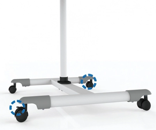 Szeroka podstawa z czterema obrotowymi kółkami zapewnia stabilność i łatwe przemieszczanie po biurze, szkole i domu.