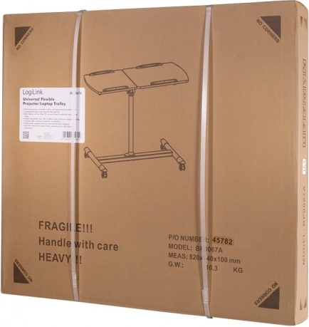 Solidny słupek i rama ze stali bezpiecznie utrzymują projektor lub laptop na miejscu. Antypoślizgowe ograniczniki zapobiegają przesuwaniu się urządzeń.