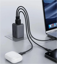 - Zapewnia nawet trzykrotnie szybsze ładowanie dzięki technologii GaN