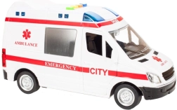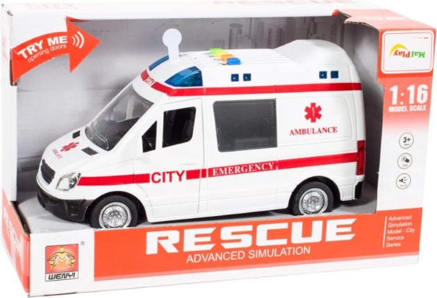 Realistyczna dziecięca karetka w skali 1:16 zapewnia dzieciom autentyczne wrażenia z akcji ratunkowej. Po naciśnięciu przycisków na dachu zapalają się światła ostrzegawcze i rozbrzmiewają dźwięki silnika, syreny oraz klaksonu, dzięki czemu zabawa jest jeszcze bardziej emocjonująca.