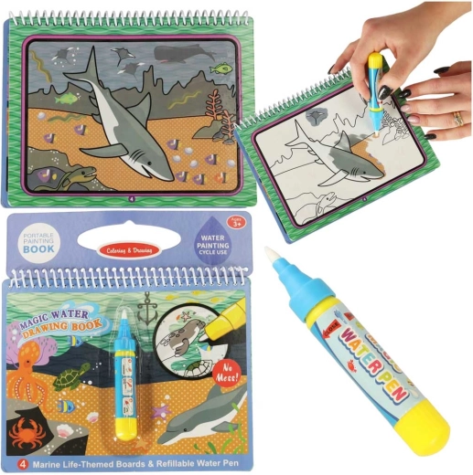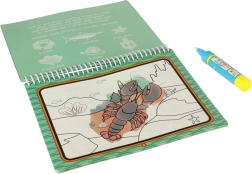Ta wielokrotnego użytku wodna kolorowanka zapewni dzieciom godziny zabawy. Dzięki magicznemu wodnemu pisakowi na stronach po kontakcie z wodą pojawiają się intensywne kolory i ukryte detale podwodnego świata. Po wyschnięciu obrazek blednie i dziecko może malować wciąż na nowo.