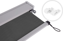 szybką i łatwą instalację. Wszystkie niezbędne komponenty są w zestawie. Markiza montowana jest na dwóch metalowych uchwytach, które przykręca się do ściany za pomocą kołków rozporowych.