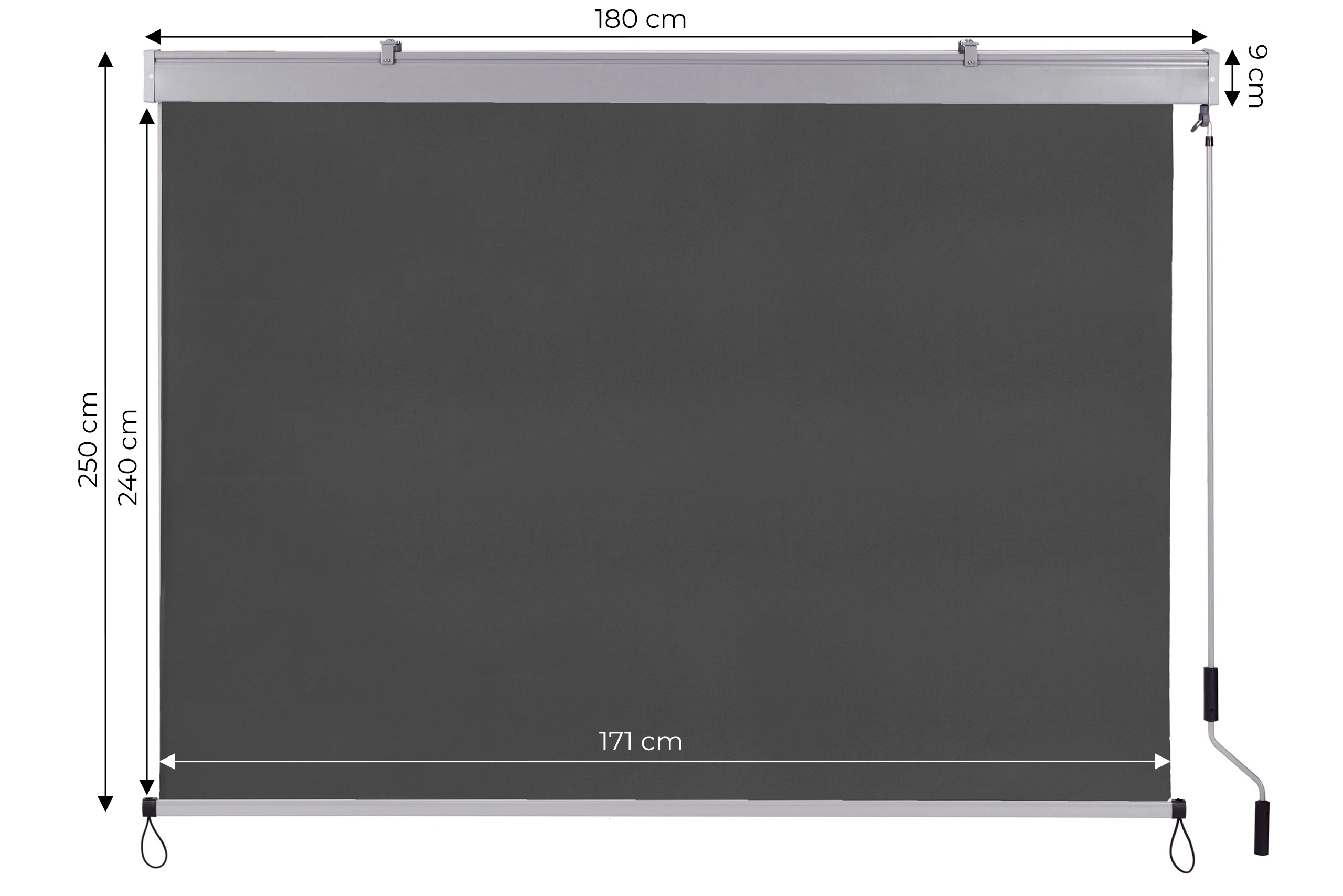 - Zawartość opakowania: markiza, korba, uchwyty, kołki rozporowe