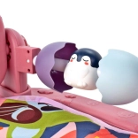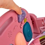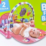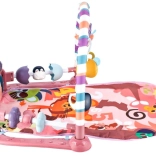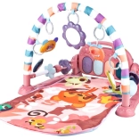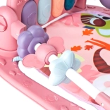 Ta różowa edukacyjna mata tworzy bezpieczne i stymulujące miejsce do codziennej zabawy. Kolorowy pałąk z zawieszonymi zabawkami zachęca maluszka do sięgania i chwytania, co wzmacnia koordynację ręka–oko. Interaktywne pianinko z podświetlanymi klawiszami oferuje 3 tryby dźwiękowe – dźwięki gamy Do–Re–Mi–Fa, krótkie odgłosy (np. dziecięcy śmiech) oraz dłuższe melodie – wspierając rozwój słuchu i poczucia rytmu.