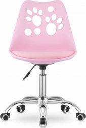 Odkryj połączenie elegancji i funkcjonalności z tym różowym krzesłem biurowym, idealnym do biura, salonu lub jadalni. Jest wyposażone w regulowaną wysokość dzięki pneumatycznemu podnośnikowi i wygodne wysokie oparcie, które gwarantuje komfort przez cały dzień.