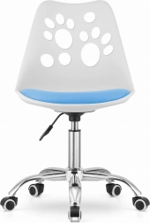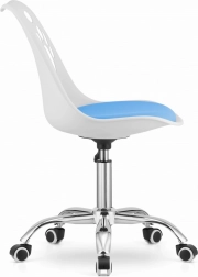 To krzesło biurowe łączy nowoczesny wygląd z praktycznością. Połączenie bieli i niebieskiego odświeży każde wnętrze.