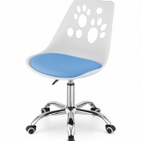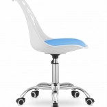Nowoczesne krzesło biurowe białe i niebieskie z chromowaną podstawą