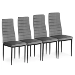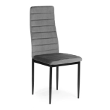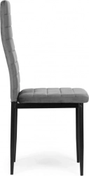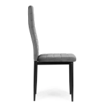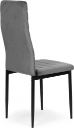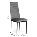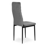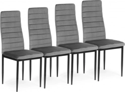 Zestaw czterech tapicerowanych krzeseł to elegancki i nowoczesny element każdego wnętrza. Krzesła zapewniają doskonały komfort dzięki profilowanemu oparciu i wysokiej jakości wypełnieniu pianką. Wyposażone są w proste, czarne metalowe nogi, gwarantujące stabilność i nowoczesny wygląd.