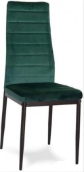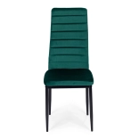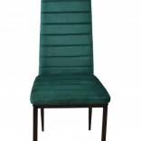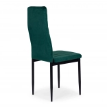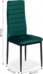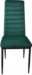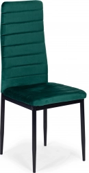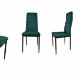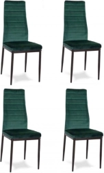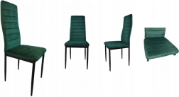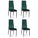 Ten zestaw czterech krzeseł jadalnianych to idealny wybór do jadalni lub salonu. Zachwyca nowoczesnym designem oraz przyjemną w dotyku zieloną aksamitną tapicerką. Dzięki wysokiemu profilowanemu oparciu i wysokiej jakości piankowemu wypełnieniu krzesła zapewniają maksymalny komfort. Czarne metalowe nogi dodają im elegancji, a jednocześnie gwarantują stabilność.
