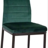 Krzesła charakteryzują się nowoczesnym wzornictwem łączącym zieloną tapicerkę i czarne metalowe nogi — to idealny wybór do współczesnych wnętrz.