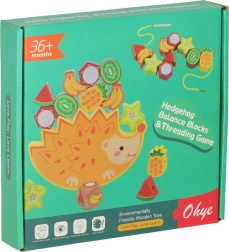 Uroczy drewniany jeżyk z kolorowymi owocowymi klockami oferuje dwie gry w jednej: nawlekanie owoców na sznurek oraz balansowe układanie na grzbiecie jeżyka. Wspiera motorykę małą, logiczne myślenie i koordynację ręka–oko. Wysokiej jakości gładko szlifowane drewno i nasycone kolory zachęcają do długiej i wartościowej zabawy.