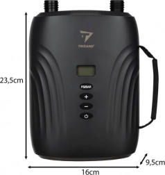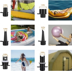 Elektryczna pompka Trizand jest wyposażona w sześć wymiennych końcówek do różnych urządzeń wodnych, w tym paddleboardów, kajaków i innych jednostek pływających. Dzięki niej napompujesz swoje wyposażenie szybko i bez wysiłku dzięki wydajności do 350 l/min i maksymalnemu ciśnieniu 20 PSI.