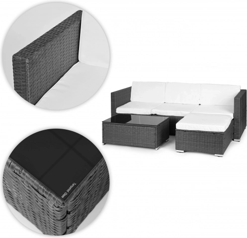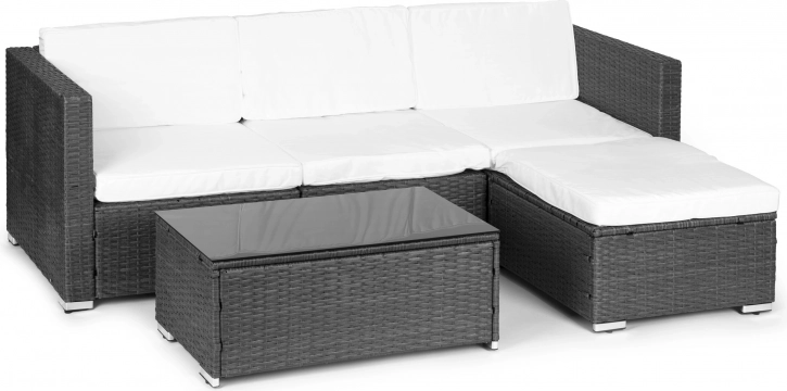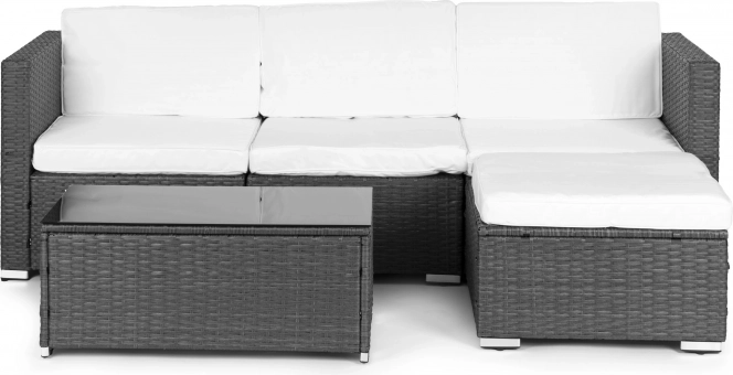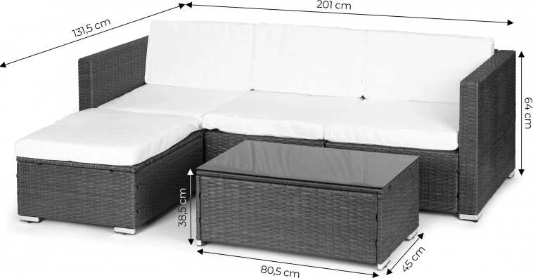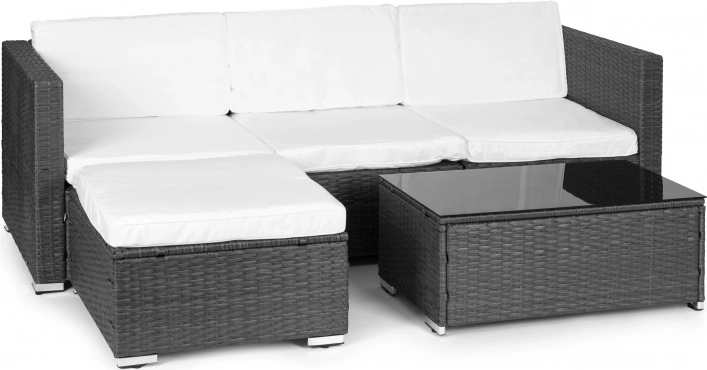 Odmień taras lub ogród w przytulne miejsce do wypoczynku. Ten zestaw wypoczynkowy MULTIGARDEN łączy nowoczesny wygląd technorattanu z komfortem miękkich poduszek oraz praktycznym stolikiem z czarnym szklanym blatem. Dzięki czterem niezależnym modułom łatwo dopasujesz układ do przestrzeni i okazji.
