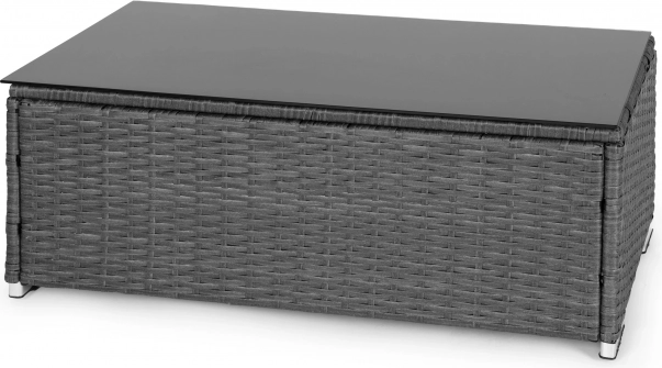 Technorattan jest kolorystycznie trwały, nie chłonie wody i odporny na deszcz oraz słońce, więc meble mogą stać na zewnątrz przez cały sezon. Hartowane szkło o grubości 5 mm jest odporne na uszkodzenia i bezpieczne w codziennym użytkowaniu. Pielęgnacja jest prosta – wystarczy przetrzeć wilgotną ściereczką.