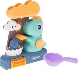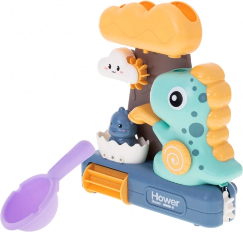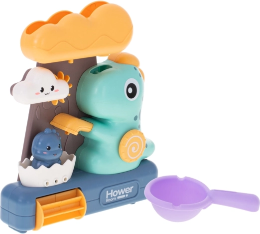 Dziecięca zabawka kąpielowa z dinozaurami i kółkiem wodnym to świetny sposób na urozmaicenie kąpieli malucha. Zabawa polega na wlewaniu wody do górnego pojemnika w kształcie dużej chmury, skąd woda swobodnie przepływa przez wszystkie części zabawki, zapewniając dzieciom wizualną frajdę.<p>