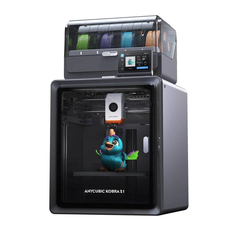 Drukarka 3D Anycubic Kobra S1 jest przeznaczona do różnych zastosowań, od projektów hobbystycznych po złożone prototypowanie. Czterokomorowy podajnik filamentu umożliwia wielokolorowy druk, dzięki czemu Twoje projekty będą bardziej atrakcyjne wizualnie. System autopoziomowania zapewnia precyzję i szybkie przygotowanie do drukowania.