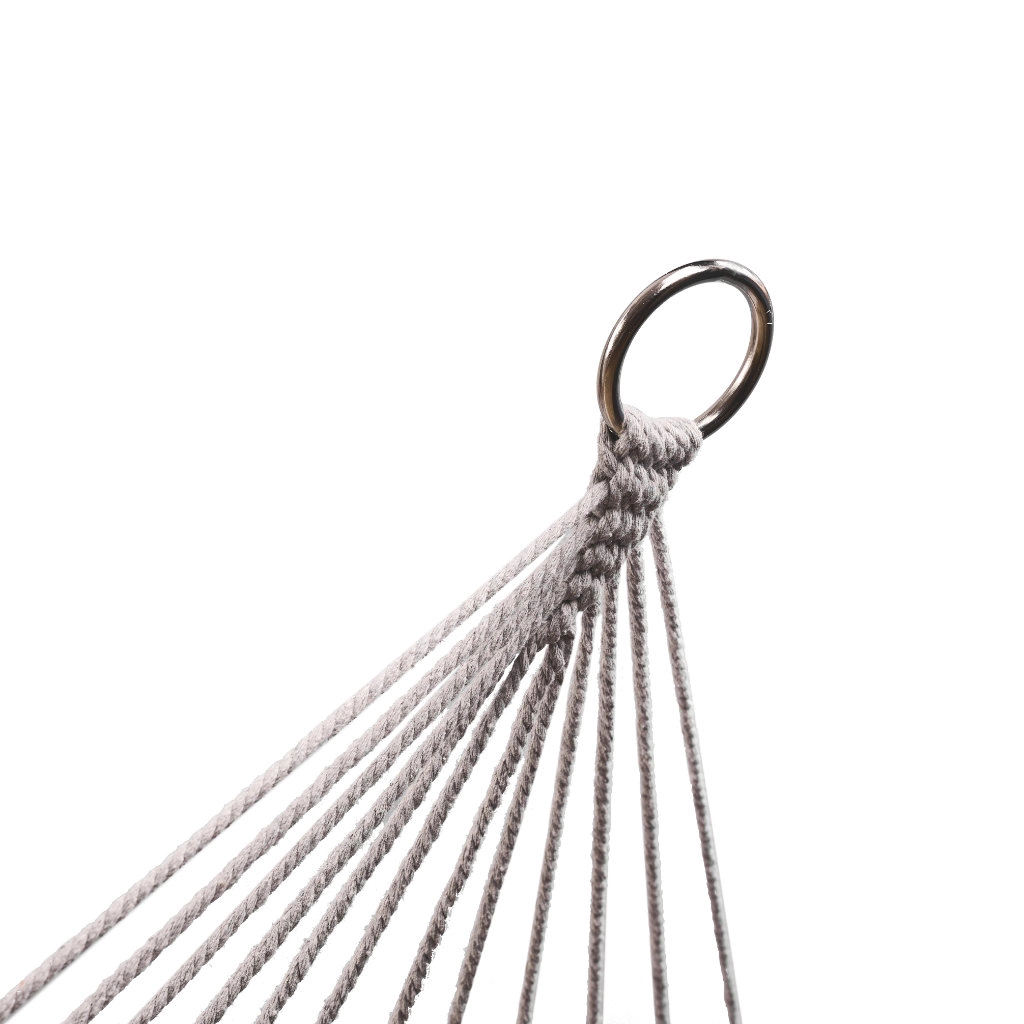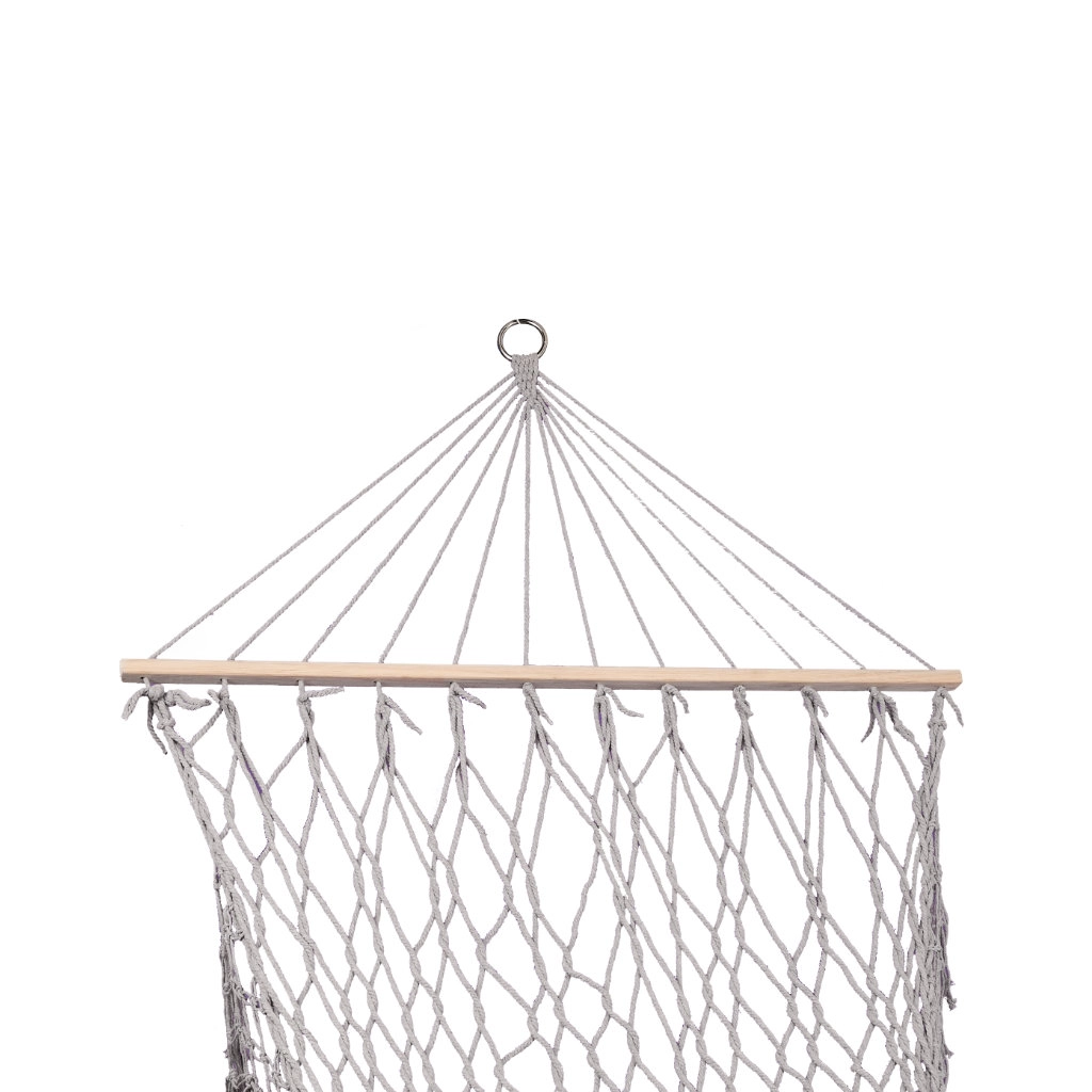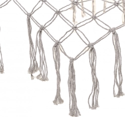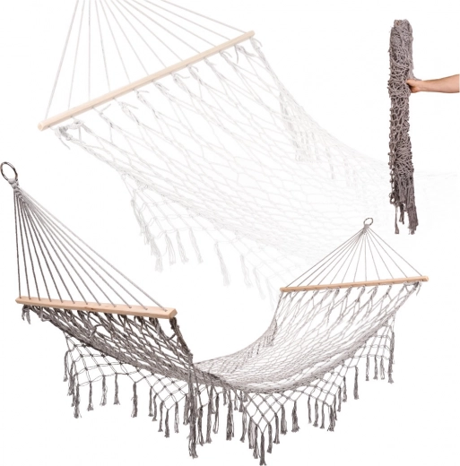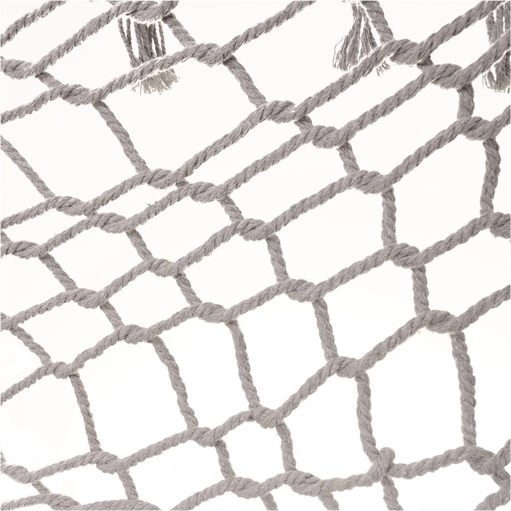 Wykonany z wysokiej jakości bawełnianych włókien (65%), które zapewniają dużą wytrzymałość i nośność do 250 kg. Dzięki eleganckim frędzlom i szaremu kolorowi idealnie wpasowuje się w każde otoczenie ogrodowe.