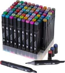 Szeroka ścięta końcówka pokrywa duże powierzchnie, cienka końcówka rysuje precyzyjne linie i detale. Jeden marker obsługuje oba typy pracy.