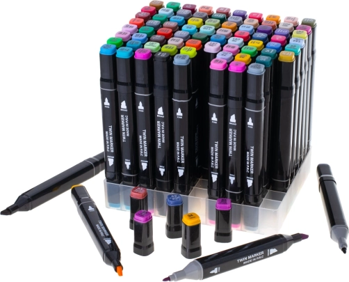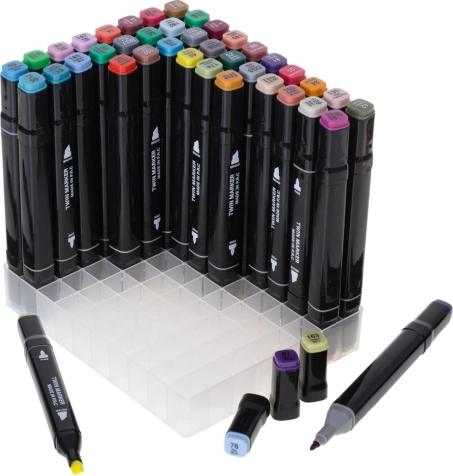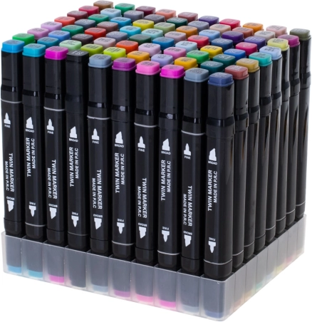 Dwustronne markery alkoholowe w etui z podstawką – 80
